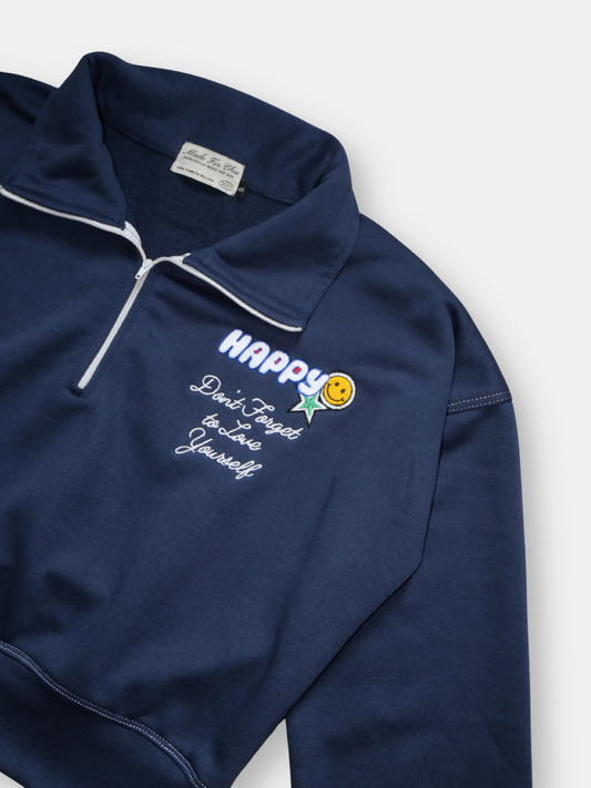 Sold outONHAND: HAPPY HALF ZIP SWEATSHIRT